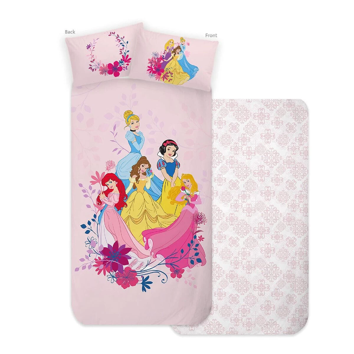 Con la migliore qualità di cotone 100%, questo set lenzuola offrirà alla vostra bambina il massimo comfort mentre si rilassa nella sua stanza. Grazie ai colori brillanti e alla curata stampa delle principesse Disney, la cameretta della vostra piccola apparirà ai suoi occhi ancora più magica, dandole modo di sognare il suo ‘vissero per sempre felici e contenti’.