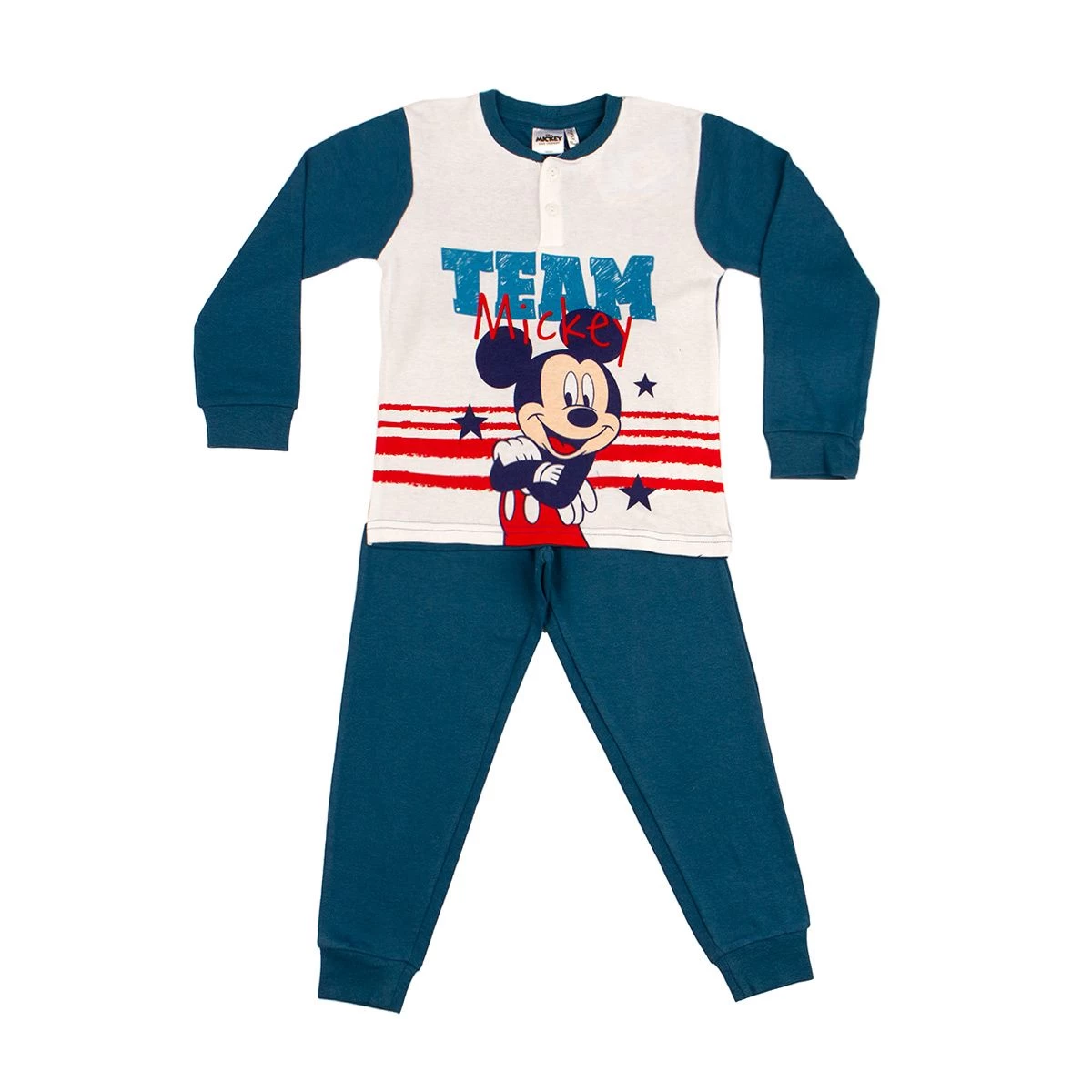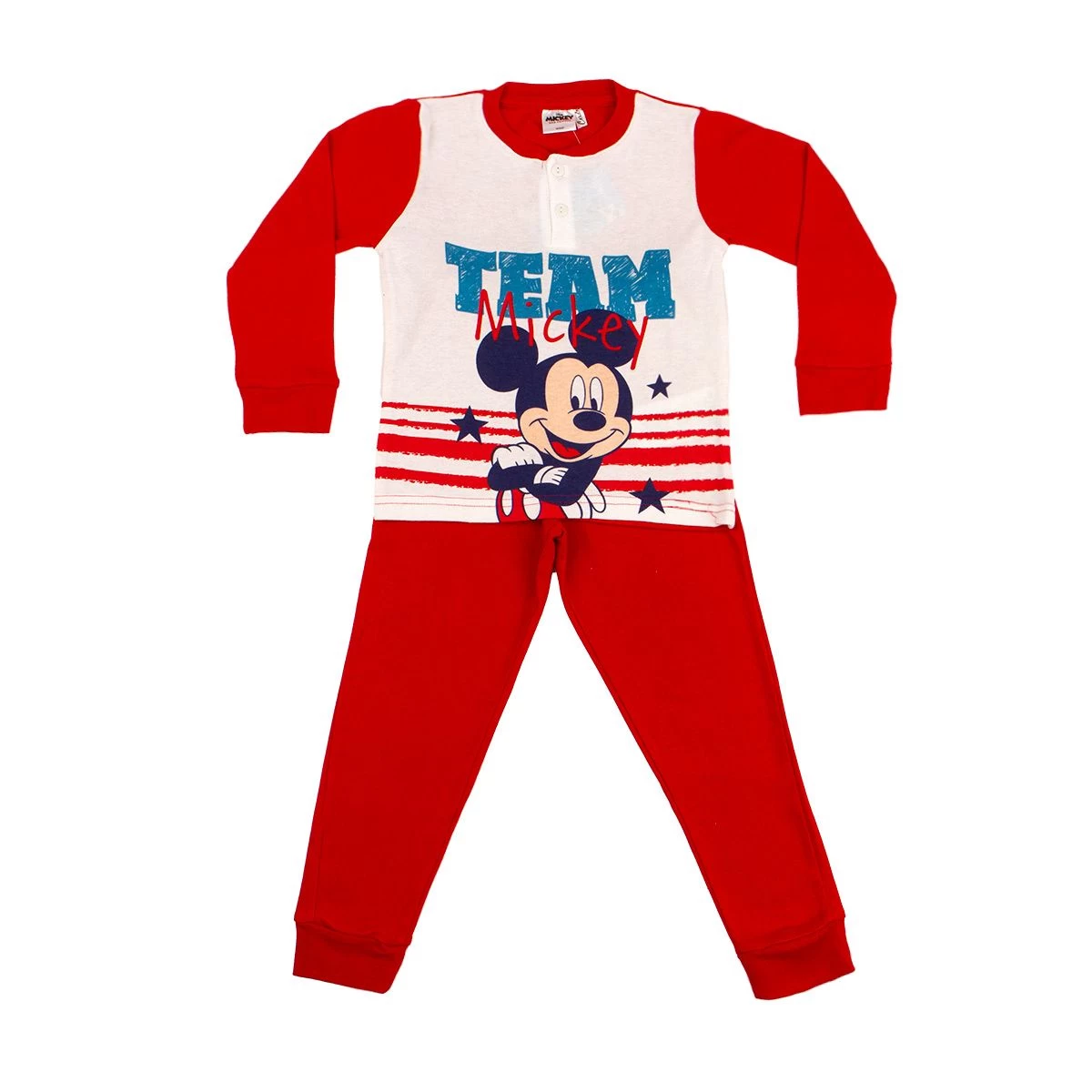 | Dettagli | La confezione contiene un pigiama per bambino composto da: Una maglia stampata girocollo serafino a due bottoni e polsini elasticizzati Un pantalone tinta unita con elastico in vita e polsini elasticizzati Stampa di Topolino Dettagli in contrasto di colore Caldo e morbido cotone Prodotto dalla licenziataria ufficiale del marchio |